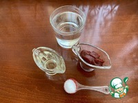 Для заливки подготовьте все необходимые ингредиенты. В воде размешайте томатную пасту, соль и растительное масло. |