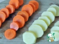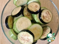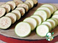 Кабачки и бакалажаны нарезать кружочками одинаковой толщины. |