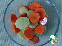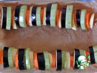 В стеклянную форму выложить, чередуя, кружочки овощей. |