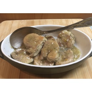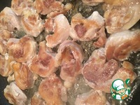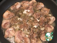 Кладём чеснок, специи и заливаем кипятком, чтобы слегка покрыть кусочки курицы. Закрываем крышкой и протушиваем до готовности. Минут 15-20. |