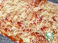 Лаваш смазать томатным соусом, посыпать травами и сыром. |