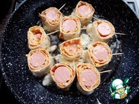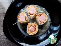 Описание: У многих, как и у меня, дети очень привередливы в еде и приходится выдумывать разные варианты, чтобы их накормить. Сосиски, несовсем полезная еда, но если найти качественный продукт в своём городе, то вполне, можно и угостить детей. Пока мои парни, играли в спортивные игры на поляне, я приготовила им такой интересный перекус. Горячие порционные завитушки из лаваша с томатным соусом, сосисками и сыром, которые, я обжарила в яйце, пришлись им по душе. Взрослым и не досталось))).