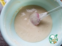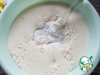 Яйца с солью взбить в пышную белую массу. Добавить муку и разрыхлитель. |