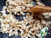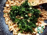 Измельчить зелень, добавить в начинку и снять с огня. |