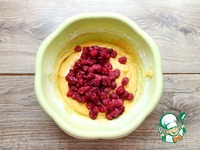 Положите в тесто ягоды малины и перемешайте. Если ягоды все таки не сухие, обваляйте их в крахмале, чтобы убрать лишнюю жидкость. |
