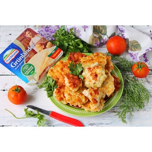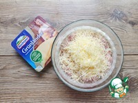 Полутвердый сыр, я предпочитаю сыры " Хохланд", натрите на средней терке и добавьте в миску, перемешайте. |