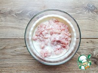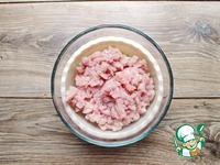 Филе индейки вымойте, хорошо обсушите и мелко порежьте. Если филе замороженное, не спешите его полностью размораживать. Полумороженое мясо легче мелко нарезать. |