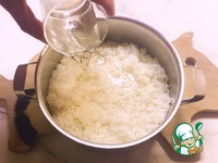 Потом в рис заливаем рисовую заправку, перемешиваем и оставляем остыть. |