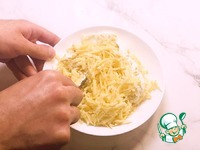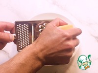 Пока рис остываем готовим сырную шапочку для этого твердый сыр натираем на крупной терке. |