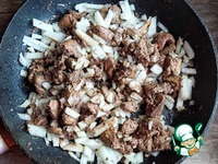 Лук почистить, помыть, нарезать кубиками и добавить к печени. Обжаривать минуты 3. |