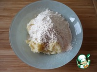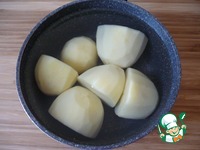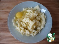 Когда картофель сварится, слить воду и размять его до состояния пюре. Оставить минут на 10, чтобы оно немного остыло. Вбить в картофельное пюре куриное яйцо. Хорошо перемешать. |