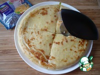 Лепешку разрежьте с помощью ножа для нарезки пиццы и можно подавать к столу. |