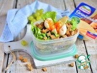 Описание: Вкусный и необычный салат из фасоли, с добавлением винограда, огурца, сухариков и сыра. Удобно взять салат с собой в контейнере, полить сметаной на природе или на работе и наслаждаться!