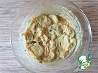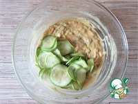 Кабачки отжать (у меня осталось 50 мл сока) и добавить в тесто. Часть кабачков оставить для украшения. |