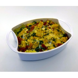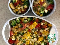 Текущего количества ингредиентов хватает на 4 порции, поэтому все не поместилось в одну форму. Дополнительно использовала 2 керамические формы, которые разместила позже на второй этаж пароварки. |