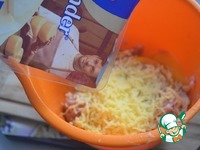 В фарш натрите сыр, лук, посолите, поперчите по вкусу. Перемешайте |