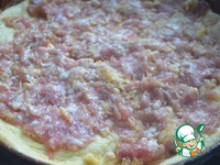 На дно формы, смазанной маслом, выложите пласт теста, на него фарш |