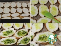 Поставить в духовку, разогретую до 180°С, и запекать 10 минут с одной стороны. Затем вынуть противень, перевернуть ломтики и запекать еще 5-10 минут с другой стороны. Я последнее время не переворачиваю, все и так прекрасно подрумянивается с обеих сторон.