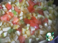 Картофель, кабачок, перец, помидор, лук нарезать кубиками |