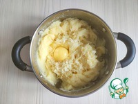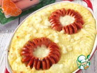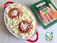 В форму добавить 1/2 часть картофельного пюре, поверхность пюре разровнять |