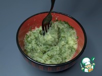 Следующим этапом разделяю получившееся поре на три равный части. В одну часть добавляю две столовые ложки измельченного укропа с петрушкой и тщательно перемешиваю. |
