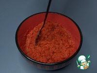 Во вторую добавляю две столовые ложки молотой паприки и также тщательно перемешиваю. |