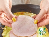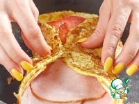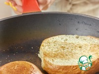 Булочку положить на сковородку. Накрыть омлетом. Низ булочки смазать кетчупом. |