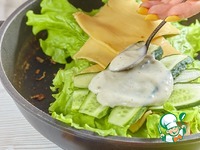 На нижнюю часть положить огурец и смазать соусом по вкусу. У меня чесночный. |