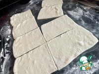 Половину теста раскатайте на присыпанном мукой столе, разделите на 8 частей. |