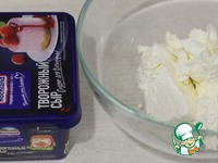 Творожный сыр выложить в глубокую миску и дать ему согреться до комнатной температуры. |