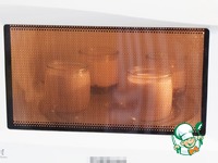 Поставить баночки в микроволновую печь и готовить при 800 Вт в течение 3-4 минут. Ориентируйтесь на свою микроволновку. Середина десерта должна немного подрагивать. |
