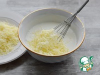 Любой полутвердый сыр натрите на мелкой тёрке. Смешайте венчиком муку и сливки, чтобы не было комков. Добавьте в сливки натёртый сыр. |