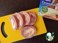 Закручиваем концы, как конфетку и убираем в морозильную камеру часа на 3-4. Фарш должен схватиться и при нарезке держать форму. |