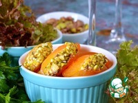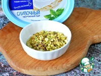 В кураге сделать надрез, вложить в него 1 ч. л. творожного сыра. "Сырный бочок" запанировать в измельченных фисташках. |