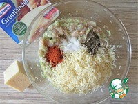 Добавить тертый сыр (у меня ТМ Hochland), соль, перец, копченую паприку. |