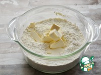 Добавьте на резанное кубиками сливочное масло комнатной температуры и разотрите всё в крошку |