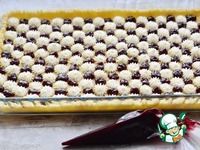 Из кондитерского мешка с насадкой отсадите по всей поверхности пирога маленькие звездочки в шахматном порядке. |