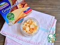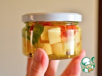 Описание: Очень ароматные, островатые кусочки полутвердого сыра, отлично подходят для закуски, в качестве дополнения к салатам или канапе! А так же - ароматное масло для заправки блюд.