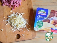 Залить яичной смесью, готовить под крышкой до готовности яиц. Затем посыпать сыром и расплавить его. |
