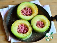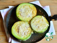 Сначала обжарить кабачок на сливочном масле с обеих сторон до корочки под крышкой. Затем в середину вложить колбасу. |