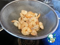 Откиньте креветки на дуршлаг, и если требуется почистите хвостики. |