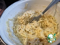 Смешайте кабачки, картофель, половину сыра, яйца и муку. Посолите и поперчите. |