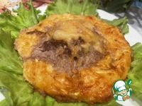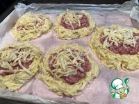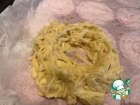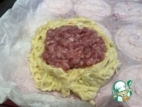На противень выложите 1/5 часть сырно-овощной массы. Сформируйте «гнездо». |