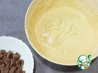 Продолжаем готовить тесто: добавляем в тесто кусочки шоколада и нежно перемешиваем ложкой. |