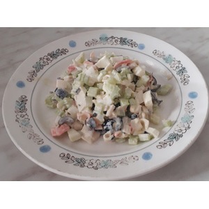 Описание: Рецепт этого салата был когда-то где-то подсмотрен, попробован и оптимизирован. В результате нехитрых манипуляций получается довольно сытный салат, обладающий свежим вкусом.