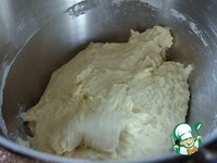 Переложить тесто, накрыть. Убрать на 1-1,5 часа в тёплое место, без сквозняков. P.S.: У меня стояло 1,5 часа на кухонном столе (в кухне 23 градуса). |