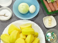 Добавляем в чашу картофель, воду и специи — Режим «Тушение» 50 минут. (При необходимости время регулируйте меньше картофеля - меньше времени. Большое картофеля - больше времени). |