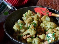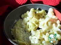 Лук почистить, нарезать мелкими кубиками и обжарить на растительном масле, 2-3 минуты, огонь средний. Добавить кочанчики капусты, жарить ещё пару минут. |