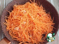 Затем к луку добавить морковь, обжаривать вместе в течение 1-2 мин. на среднем огне. |