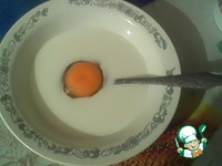 Теперь перейдем к вымешиванию теста: Растереть яйцо с солью, сахаром, сливочным маслом. Тонкой струйкой влить в молоко. Добавить половину чайной ложки соды, погасив ее уксусом. Размешиваем. |